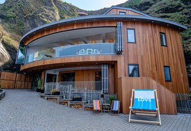Accessed via a hand carved tunnel through the cliff and with its own private beach!