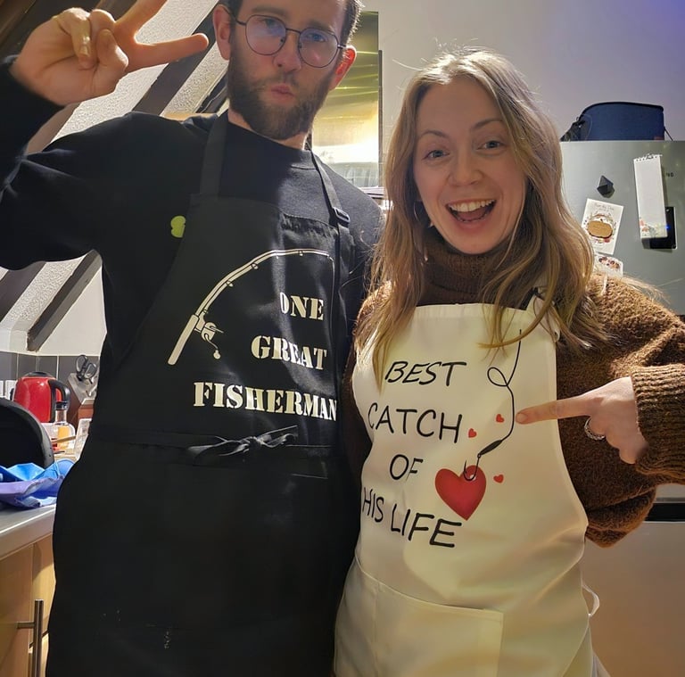 A few weeks of working together and 350 prop bombs later, it was bombs away for their relationship! Over the last four and a half years they have merged both of their busy lives into one big chaotic love story: moving in together, lots of amazing travelling and the occasional meet up for a motorway service dinner when both working on opposite sides on the country!
